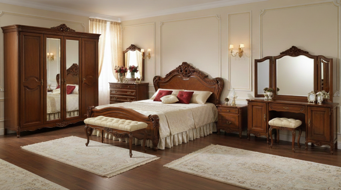 Каждый предмет здесь — это тепло натурального дерева, благородство ручной резьбы и вековые традиции мастеров. Спальни, гостиные и кабинеты, достойные дворцовых интерьеров, ждут своих новых владельцев.